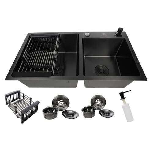 Cuba Gourmet Quadrada Aço Inox 304 Preta Com Acessórios 78X43cm Cuba Gourmet de Aço Inox ideal para quem buscaSofisticação e praticidadeCuba produzida em aço inox 304 com 100% de purezaNo material, com sistemaAnti-risco ou seja, não risca e não cria pontos de ferrugem com o passar do tempo, com 1,0mm deEspessura, medindo 78x43x23cm.Acompanha válvula de 4 1/2 que possibilita aInstalação de Triturador de Resíduos, EscorredorDe Louça em Aço Inox e DispenserDe detergente em Aço Inox.Produto de altíssima qualidade e muita praticidade,Equipada com sistema antirruído, evita que oFluxo de água ecoe na cuba diminuindoAssim o barulho para seu maior confortoSalienta-se sua beleza e estética com linhasModernas e acabamento em aço inoxEscovado acetinado ela é resistente e fácil de limpar, evitando a corrosão e conservando sua beleza por muitoMais tempoEspecificações:Marca: STILLUS HOMEMedidas externas: 78 X 43 X 23 cmMedidas internas: Cuba maior 38x38x20 cmCuba menor 31x33x20 cmMaterial: Aço inoxidável 304Espessura externa: 3 mmEspessura interna: 1 mmAcabamento: Aço Inox PretoAplicação: Embutir ou SobreporFuração da Torneira: 3,5 cmFuração do dosador: 2,8 cmPosição da Válvula: CentralizadaFuração da Válvula: 4.1/2Válvula Escape/Ladrão: SimCapacidade do dispenser detergente: 500mlIndicação: Cozinha, Churrasqueira, ÁreaGourmetAceita Triturador: SimAnti-ruído: Sim Fundo e laterais Acompanha Acessórios: SimAcompanha Sifão: SimRecomendações de Uso:Não usar ácido muriático, água sanitária ou qualquer outro solvente paraLavar objetos na pia.Na reforma ou construção, proteger a pia para nãoDeixar sobre a mesma pó de cimento ou gesso.Enxaguar e secar bem a peça após o uso.Nunca deixar objetos metálicos sobre a peça porPeríodos muito longos, para evitar a corrosão.Para manter o brilho da sua pia, recomendamos oUso da pasta para polir e remover manchas emSuperfícies de aço inoxidável.Itens inclusos:- 1 Cuba Gourmet Quadrada Aço Inox 304 Preta60x40cm- 1 Válvula de escoamento em aço inox 304- 1 Válvula e tubulação do ladrão- 1 Cesto escorredor- 1 Dosador de detergente 500ml.Todos nossos produtos acompanham Nota FiscalGarantia 6 meses Marca: Stillus Home
