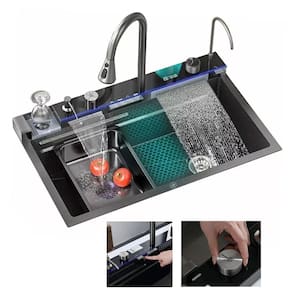 A pia possui varios jatos que podem ser controlados pelos botoes em formas teclas.