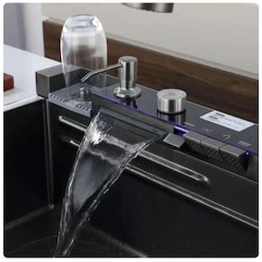 O design elegante e moderno melhora o uso do espaço. Economize tempo com a nossa pia completa.