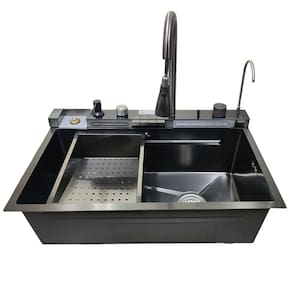 Água em forma de cascata, para lavar a louça sem pressão e grande cobertura de fluxo de água.