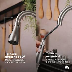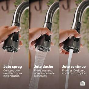 Já a Torneira Maranguá oferece tecnologia e desempenho com bica em ABS extensível até 60 cm para maior alcance na lavagem de alimentos e utensílios, giro de 360 e três modos de jato: ducha, spray e contínuo. O botão giratório permite o ajuste da temperatura da água, e o lavador de copos integrado facilita lavagens rápidas, basta pressionar o objeto a ser lavado para acionar.