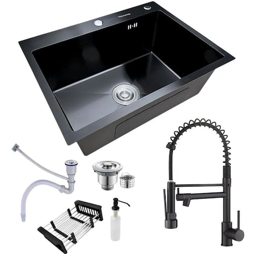O Kit Acompanha: -cuba Pia Inox Preta Quadrada Cozinha Gourmet 60cm Acessórios-Torneira De Cozinha Pia Gourmet Monocomando Cor Preta Inox 304 ESPECIFICAÇÕES TÉCNICAS CUBA: Marca: Revomax Medidas externas: 60 X 45 X 21 cm Medidas internas: 55 x 35,5 x 20,5 cm Material Predominante: Aço inoxidável 201 Espessura externa: 3 mm Espessura interna: 1 mm Acabamento: escovado Galvanizada: Maior resistência a corrosão Aplicação: Embutir ou Sobrepor Furação da Torneira: 3,5 cm Furação do dosador: 2,8 cm Posição da Válvula: Centralizada Furação da Válvula: 4.1/2 Válvula Escape/Ladrão: Sim Capacidade do dispenser detergente: 300ml Indicação: Cozinha Aceita Triturador: Sim Anti-ruído: Sim Fundo e laterais Acompanha Acessórios: Sim Sifão: Sim Itens inclusos: - Cuba Revomax - Válvula de escoamento - Válvula e tubulação do ladrão - Cesto escorredor - Dosador de detergente. ESPECIFICAÇÕES TÉCNICAS TORNEIRA: Composição: Aço Inoxidável Acabamento: Cromado Altura: 47 cm Conteúdo da embalagem: Flexíveis, roscas de fixação, torneira monocomando Temperatura Mínima da Água: 5C Temperatura Máxima da Água: 75C É possível usar apenas com água fria: Sim, necessária utilização de adaptador T Pressão Mínima da Água: 5 mca metros de coluna dágua Pressão máxima da água: 40 mca Furação da bancada para instalação: 35mm milímetros . Possui Misturador: Sim Quente e Fria: Sim, porém, é necessário que você já tenha o sistema que determina a temperatura da água em sua instalação. Duas Entradas de Água: Sim Peso do Produto: 2kg Feitos em inox 304 de alta qualidade, esses itens não apenas garantem um acabamento elegante e moderno, mas também oferecem resistência à corrosão e fácil manutenção. A torneira monocomando proporciona praticidade no controle de temperatura e vazão, enquanto a cuba de design quadrado oferece amplo espaço para lavar grandes panelas e utensílios. Eleve sua cozinha a um novo patamar com o kit Revomax a combinação de beleza e funcionalidade do vendedor: 3 meses Marca: Não Informado