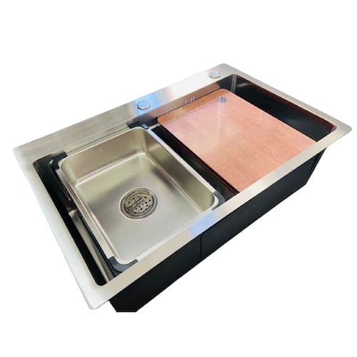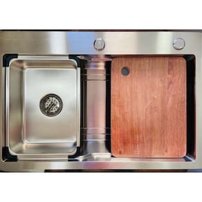 Cuba Inox Gourmet Cozinha Sobrepor Ou Embutir 63x35x21cm. (com abas 68x45CM.) Produto de alto padrão, com chapa de aço inox muito espessa, grande profundidade aumentando a capacidade interna, mais praticidade no dia a dia.Moderno acabamento acetinado, mesmo que fosco com pouco brilho, o acetinado é menos vulnerável a riscos, o que garante uma alta durabilidade.Itens e acessórios que acompanham a cuba:- Válvula de 4.1/2" luxo- Tabua Madeira 25x34,5CM.- Escorredor 25x34,5CM. Informações Técnicas:-Acabamento Acetinado-Aço inox AISI 304-Possui "anti-ruído" (reduz o barulho causado pela queda da água na cuba).