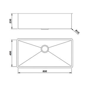 A cuba apresenta design de linhas retas e raio interno de 10 mm, resultando em um visual minimalista e de fácil higienização. Pode ser instalada tanto embutida quanto sobreposta, adaptando-se perfeitamente a diferentes estilos de bancadas e projetos de cozinha.