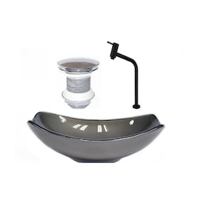 Cuba oval chanfrada 46cm grafite + valvula + torneira preta as nossas cubas de vidro são ideais para projetos de decoração em banheiros com alto padrão e bom gosto, pois proporcionam um efeito moderno e único ao ambiente, são instaladas sobre a bancada e por isso realçam com destaque o acabamento do seu banheiro, sem contar a eficiência e praticidade que se leva para a sua casa. O vidro é pintados com tinta de alta performance, o que lhe garante a permanência da cor. Na compra deste super combo 3 em 1, você compra de uma só vez, a cuba oval chanfrada, válvula click e a torneira de metal preta, de forma mais fácil, mais rápido e mais barato. Dados técnicos da cuba: formato: oval chanfrada; material: vidro; instalação: apoio ou sobrepor; dimensões: 46x31x13cm comprimento x profundidade x altura ; espessura: 10mm. Dados técnicos da válvula: formato: redonda; material: polipropileno; instalação: cubas, tanques e lavatórios; diâmetro: 1. 1/4 polegadas. Dados técnicos da torneira de metal: material: liga metálica preta; conexão de entrada: 1/2 polegada -1/4 volta; altura total da torneira de metal preta: 37 cm; altura da queda dágua: 27 cm. Garantia: 12 meses conforme política de troca e devoluções . Atenção: preço referente a cuba, válvula click e torneira de metal preta. Montagem: montagem e instalação não inclusa na venda ou preço do produto, elas são de inteira responsabilidade do cliente. Imagens ilustrativas.