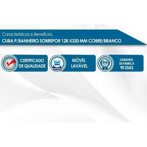Imagens Meramente Ilustrativas. Não nos responsabilizamos pela montagem/instalação dos produtos. Todas as informações divulgadas são de responsabilidade exclusiva do fabricante/fornecedor. Acompanha Pia?: Não | Inclui Torneira: Não | Tipo de Ambiente: Banheiro | Vantagens Extra dos Móveis de Banheiro e Lavanderia: É Lavável | Tipo de Pintura: Pintura Eletrostática a Pó | Garantia: Garantia de 90 dias | Certificação de Qualidade: Qualidade Aprovada | Tipo de Acabamento: Galvanizado | É resistente à água: Sim | É Lavável?: Sim | Possui Garantia Complementar de Fábrica após Prazo Legal: Não | Garantia Legal de Fábrica CDC em Meses: 3 Meses | Condição do item: Novo | Origem: Nacional | Estilo do Móvel: Moderno | Tipo de Acabamento da Pintura: Semi Brilho | Código universal de produto (GTIN): 7908212534173 | Produto precisa de Montagem?: Sim, a montagem é simples mas sugerimos a contratação do nosso serviço de montagem (para os CEPs em que o serviço está disponível) ou de algum profissional experiente de sua preferência | Descrição do Tamanho: 12.80x:33.00x33.00 cm | Estado de Origem: RJ | País de origem: Nacional | Peso Produto Com Embalagem (Kg): 0.65 | Material para Filtro: N/I | Cor Mobly: N/I | Condição do Item: Novo | Link Site: https://www.costaricacolchoes.com.br/produtos/48396S8694/ | Numeral: 0 | Não se Aplica: N/A | Não Possui: Não | Linha/Modelo: Tecno Mobili | Cor Cnova: Blush | Cor Meli: Ciano | Contatos Sac Fábrica: vendas@moveisvideira.com.br | Categoria - Sub: Cuba p/Pia de Banheiro | Categoria - Pai: Móveis de Banheiro | Comprimento Embalagem: 34.50 | Largura Embalagem: 34.50 | Altura Embalagem: 15.60 | Kit: 0 | Peso: 0.65 Kg | Peso Real Kg: 0.65 | Peso Cubado: 4.64 | Volumes: 1 | M3: 0.02 | Comprimento/Profundidade: 33 cm | Largura: 33 cm | Altura: 13 cm | Tamanho Montado: Larg:33.00 x Comp/Prof:33.00 x Alt: 12.80 | Comprimento/Profundidade Montado: 33.00 | Largura Montado: 33.00 | Altura Montado: 12.80 | MPN: BN3675 | Cor Fabricante: Cobre/Branco | Marca: Tecno Mobili | Fabricante: Tecno Mobili | Linha: Tecno Mobili