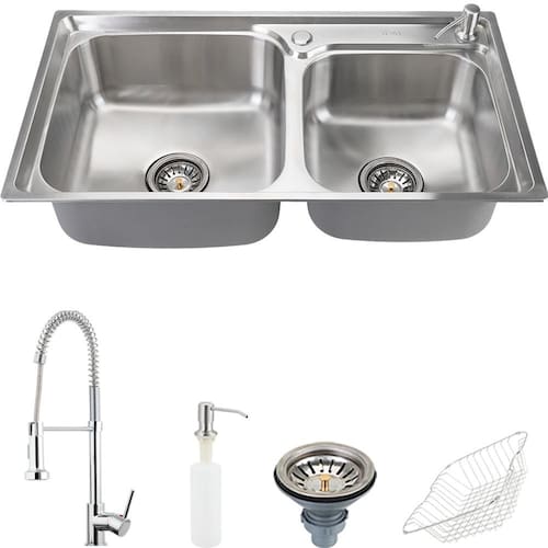 Cuba - Cesto escoredor - Dosador de detergente 300 ml - Válvulas de escoamento - kit acessórios de instalação - Placa de reforço para Torneiras gourmet - Misturador Envira