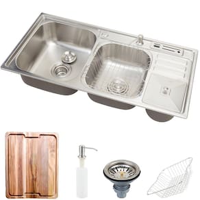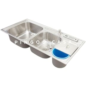 Cuba inox Nukini- Cesto escorredor - Dosador de detergente 300 ml - Porta Facas - Válvula de escoamento - Lixeira embutida 3 litros - kit acessórios de instalação - Placa de reforço para Torneiras gourmet - Tábua de corte