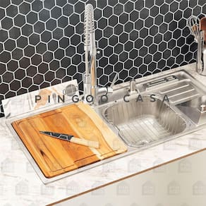 Ela conta com local para dosador de detergente, para aprimorar a organização da pia e praticidade na limpeza de alimentos e louças. Com borracha anti ruído, você evita que o fluxo de água ecoe na cuba, diminuindo o barulho durante o uso.