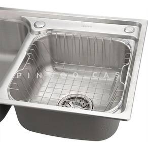 Cuba inox dupla Potiguara - Válvulas de escoamento - Dosador de detergente 300 ml - Cesto escorredor - Lixeira de embutir 5 litros - kit acessórios de instalação - Placa de reforço para Torneiras gourmet.