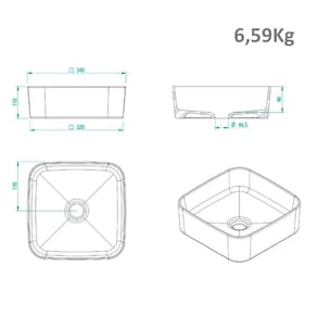 Informações técnicas: Cor: Branca Acabamento: Brilhante Material: Louça Formato: Quadrada Dimensões: - Comprimento: 34cm - Profundidade: 34cm - Comprimento da base: 32cm - Profundidade da base: 32cm - Altura: 11cm - Diâmetro do furo da válvula: 4,5cm Tipo de instalação: Apoio Modelo: Piazza
