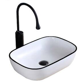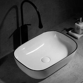 Tipo: Cuba Sobrepor Formato: Retangular cantos arredondados Material: Cerâmica Cor: Branco com borda preta Marca: Deend Altura: 13,5cm Largura: 46cm Profundidade: 32cm Peso: 7,2 Kg Modelo: D230927 EAN: 6927336609278