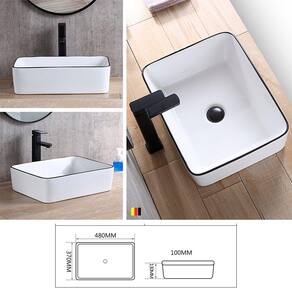 1 x Cuba Pia Banheiro Cerâmica Branca Sobrepor Quadrada - Deend