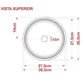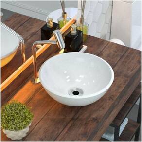 Pelo fato de ser redonda, com 30cm de diâmetro, essa pia é ideal para espaços pequenos, mas cheios de estilo. Além disso, a sua qualidade é indiscutível, já que é fabricada em mármore sintético com acabamento em Gel Coat, o que torna essa cuba bastante resistente e semelhante à louça, porém com melhor custo-benefício.