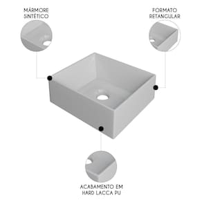 Fabricada em mármore sintético, um material composto por resina poliéster e carga mineral, com camada de Gel Coat e acabamento de pintura poliéster PU, ela é bastante semelhante à louça, porém mais econômica. A Cuba de Apoio combina resistência e durabilidade, além de ter uma instalação super prática. O acabamento em Hard Lacca PU garante brilho e proteção, proporcionando um visual sofisticado e fácil de manter.
