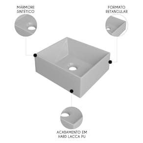 Fabricada em mármore sintético, um material composto por resina poliéster e carga mineral, com camada de Gel Coat e acabamento de pintura poliéster PU, ela é bastante semelhante à louça, porém mais econômica. A Cuba de Apoio combina resistência e durabilidade, além de ter uma instalação super prática. O acabamento em Hard Lacca PU garante brilho e proteção, proporcionando um visual sofisticado e fácil de manter.