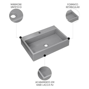Fabricada em mármore sintético, um material composto por resina poliéster e carga mineral, com camada de Gel Coat e acabamento de pintura poliéster PU, ela é bastante semelhante à louça, porém mais econômica. A Cuba de Apoio combina resistência e durabilidade, além de já vir com furação para torneira, o que torna a instalação ainda mais prática. O acabamento em Hard Lacca PU garante brilho e proteção, proporcionando um visual sofisticado e fácil de manter.