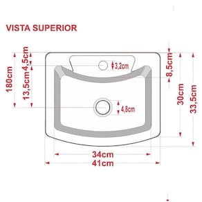 Diâmetro do furo para torneira: 3,2 cm.