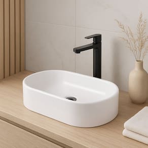 Fabricada em mármore sintético de alta resistência, possui formato retangular arredondado, acabamento clean e bordas suaves que unem elegância, durabilidade e fácil limpeza. Versátil, adapta-se a diferentes bancadas, como madeira, pedra ou mármore, harmonizando com projetos minimalistas ou contemporâneos.