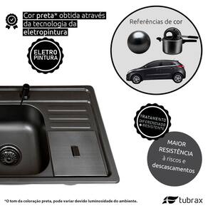 Produzida em aço Inox 201 com a qualidade necessária para uma cozinha de luxo. Acabamento acetinado na cor preta obtido através de tecnologias de ponta, que além de conferir um ar moderno ao produto, oferece camadas extras de proteção contra agentes externos.