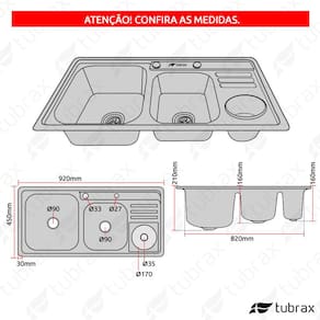 As cubas Tubrax acompanham ainda uma placa de reforço projetada especialmente para perfeita fixação de torneiras gourmet. Utilizando este reforço, evita-se que a torneira fique mal fixada, dando maior firmeza no seu uso. Só quem é líder na venda de torneiras gourmet também pensaria nessa solução para a sua Cozinha.