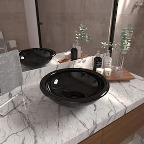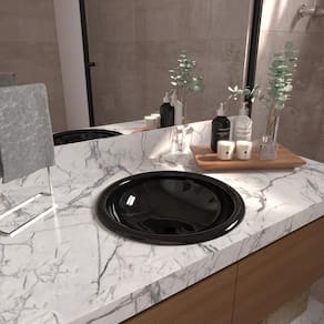 Transforme seu banheiro com a elegância da cuba Lume preta em formato circular.