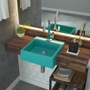 Cuba Pia Semi Encaixe Para Banheiro Quadrada Kuad 355 C08 Azul Turquesa - Mpozenato