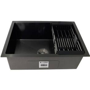 Cuba Preta Quadrada Inox Cozinha Pia Embutir Sobrepor Gourmet 5040 Premium Lixeira 5L,Tábua Multiuso e Acessórios Cuba Preta Quadrada Inox 201 Cozinha Pia Embutir Sobrepor Gourmet 50x40 Premium com Lixeira de Embutir 5L, Tábua Multiuso e Acessórios A Cuba Black Inox Quadrada 5040 Gourmet é a escolha certa para proporcionar elegância e modernidade ao projeto de sua cozinha. É fabricada em Aço Inox 201 e possui acabamento Escovado Scotch Brite, apresentando grande durabilidade e beleza. Acompanha uma válvula Premium de 4 1/2 polegadas de diâmetro com cesto removível para limpeza. O design reto é uma tendência de design para cubas gourmet e permite o melhor aproveitamento da cuba além de apresentar uma estética moderna e minimalista. A Cuba Black Inox Quadrada 5040 pode ser instalada tanto embutida como por cima da bancada, pois possui as abas com acabamento escovado assim como na parte interna da cuba. Características Instalação: Embutir ou Sobrepor Embutida Undermount , sobrepor semi flush e nivelada com a bancada modo flush Cuba: Quadrada Gourmet Material: Aço Inox AISI 201 Espessura: 0,8 mm + 2.0mm nas abas de instalação para maior resistência Acabamento: Escovado Scotch Brite Dimensões Externas: 50 x 40 cm Dimensões Internas: 45 x 35 cm Profundidade da cuba: 20 cm Possui PADs de borracha na parte inferior para minimizar o ruído durante o uso Possui revestimento anti-ruído em toda a superfície interior da cuba Recomendações de utilizações : Não utilizar ácido muriático, água sanitária ou qualquer outro solvente para lavar objetos na pia. Na reforma ou construção, proteger a pia para não deixar sobre a mesma pó de cimento ou gesso. Enxaguar e secar bem a cuba após o uso. Não deixar objetos metálicos sobre a cuba por períodos muito longos e não deixar restos de Bombril ou palha de aço, para evitar a oxidação superficial. Para manter o brilho da sua pia, recomendamos o uso da pasta para polir e remover manchas em superfícies para aço inoxidável. Acessórios inclusos: - 1 Válvula 4 1/2 Premium - 1 Dispenser de Sabão com a parte superior em Aço Inox - 1 Cesto Escorredor Ajustável em Aço Inox - 1 Lixeira de Embutir em Aço Inox 5L -1 Tábua Multiuso 39,0 X 25,0 CM : Cuba Inox 12 meses, Acessórios 3 meses. Marca: Não Informado