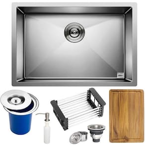 - 1 Válvula 4 1/2 Premium - 1 Cesto Escorredor Ajustável em Aço Inox - 1 Lixeira de Embutir em Aço Inox 5L - Tábua Multiuso 39,0 X 25,0 CM Marca: Não Informado