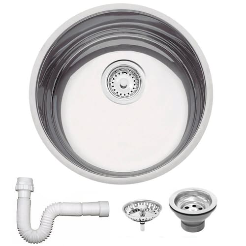 CARACTERÍSTICAS - Aço Inox AISI 304 com 0,6 mm de espessura e acabamento polido; - Acompanha válvula de 3 1/2"; - Profundidade da cuba 14 cm; - Diâmetro: 35,0 cm; - Garantia de 12 meses, pelo fabricante, contra defeitos de fabricação; - Acompanha sifão simples.