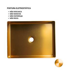 - marca stillus home - material: aço inox 304 - cor: dourado escovado - medidas: 47x36cm - altura: 12cm - pintura eletrostática: anti-risco e anti-ferrugem - acompanha: válvula click escovada e sifão com sistema antiodor
