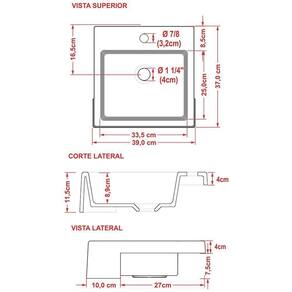 Altura Montado: 11 | Largura Montado: 39 | Profundidade Montado: 37