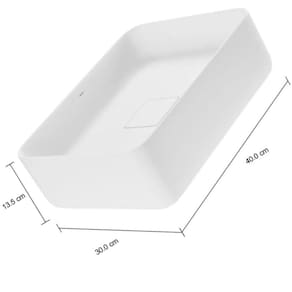 Aplicação: Apoio Linha do Produto: Slim Altura: 135 mm Largura: 400 mm Comprimento: 300 mm Peso: 9.126 kg Composição Básica: Argila, feldspato, caulim, vidrados e corantes inorgânicos Normas: NBR-16728-1 / NBR-16728-2 Obs.: As dimensões do produto sem embalagem podem variar até 3%, conforme especificado para produtos de louça.