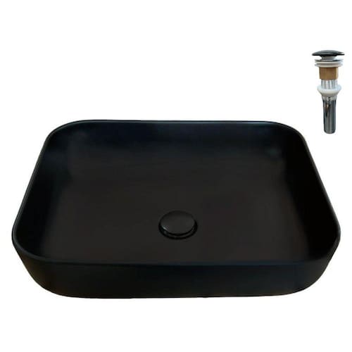 Especificações técnicas - medidas: 50x38x15 cm- material predominante: cerâmica - cor: preta - acabamento: pintura eletrostática - aplicação: apoio sobrepor - posição da válvula: centralizada - indicação: banheiro ou lavabo