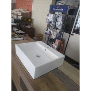 Cuba de sobrepor em louça branca brilhosa. Com escape(ladrão). Comprimento 51 cm, largura 44 cm, altura 14,5 cm, profundidade 10 cm.