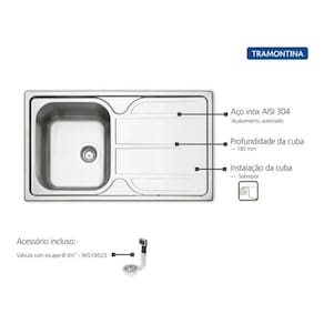 Para manter o brilho da sua pia, recomendamos o uso da pasta para polir e remover manchas em superfícies de aço inoxidável "Tramontina".