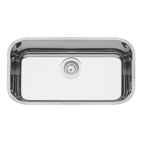 Produto: Cuba com bordas lisas para instalação por baixo da bancada e 17 cm de profundidade. Opcionalmente são oferecidos acessórios como, tábua em madeira, grade aramada, bandeja perfurada e cesta quadrada.