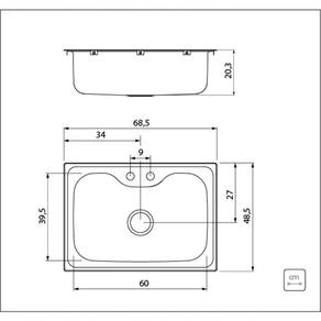- Profundidade da cuba: 20,3 cm;