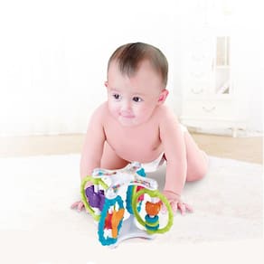 Cubo 3 em 1 - Bola + chocalho + mordedor É um brinquedo programado e elaborado com uma tecnologia exclusiva que facilita o manuseio às mãozinhas pequenas dos bebês. Ele certamente incentivará o desenvolvimento das habilidades motoras finas e audição, pois seu chocalho com sons divertidos e sua cor viva não permitirão que os pequenos tirem a atenção dele; ainda dispõe de um detalhe em formato de bola com cores diferentes que também estimularão o foco. Além disso, é um brinquedo compacto perfeito para ser transportado por onde a diversão for sem ocupar muito espaço. Com o Chocalho o seu filho terá horas de recreação não só divertidas como também de muito desenvolvimento Produzido em material plástico atóxico resistente e com cores vibrantes.