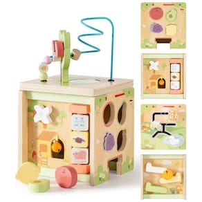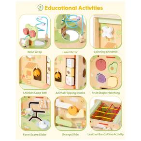 Explore a aventura temática do pomar com o Cubo de Atividades 9 em 1! Embalado com nove jogos envolventes como Enrolar Contas, Espelho do Lago e Cata-Vento Giratório, tudo em um único brinquedo, seu filho pode explorar uma variedade de atividades da fazenda e desenvolver sua criatividade e habilidades de resolução de problemas. Segurança em Primeiro Lugar! A segurança do seu filho é nossa maior prioridade! Feito de madeira de borracha natural, nosso brinquedo de cubo para bebês apresenta bordas suaves e arredondadas e tinta à base de água não tóxica, garantindo que não lasque durante o uso. Brincar com tranquilidade, é uma escolha segura e durável para o seu pequeno. Brinquedo Montessori! Projetado para crianças de 12 meses em diante, este cubo de atividades para bebês é perfeito para fomentar o reconhecimento de padrões, habilidades motoras de forma divertida e interativa. É uma ferramenta de aprendizado precoce que estimula a imaginação e o crescimento intelectual da criança. Criativo e Compacto! O labirinto de contas na parte superior e a base de madeira dos cubos de atividades são destacáveis e podem ser virados e armazenados dentro da caixa para facilitar o transporte. É o brinquedo de viagem perfeito ou atividade de mesa independente, tornando-o conveniente para diversão em movimento. Ótimo Presente para Crianças! Este cativante cubo de atividades de madeira para crianças é um convite para brincadeiras ativas e imaginação. É perfeito para quintais, parques ou escolas e é um presente ideal para crianças a partir de 12 meses.
