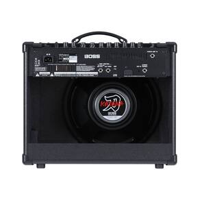 Especificações Técnicas: Tipo do Amplificador: Solid State Power: Analógico de Classe AB Número de Canais: 6x tipos de Amps com 1 variação cada (12x total) Potência Total: 50W (25W, 0,5W selecionável) Tamanho do Alto Falante: 1x 12 polegadas Reverb: Sim Efeitos: Modulação, Delay, Booster, FX (até 60 através do BOSS Tone Studio) EQ: EQ de 3 bandas, Tone Entradas: 1x 1/4 P10 (instrumento), 1x 1/4 P10 (power amp in), 1x 1/8 P2 (auxiliar) Saídas: 1x 1/4 P10 (Recout/phones) USB: 1x tipo C Interface de áudio: Sim Bluetooth: Sim (através do acessório BT-DUAL vendido separadamente) Fones de ouvido: Sim (estéreo) Footswitch: Entrada e saída 1x 1/4 P10 Footswitch incluso: Não, FS-5L, FS-6, FS-7 vendidos separadamente Material utilizado na construção: Madeira revistido de Tolex na cor preta Alimentação: Cabo AC Consumo: 47 W Tensão: Apenas 110V (no uso da tensão 220V é necessário um transformador – não incluso) Largura: 470 mm - 18-9/16 polegadas Profundidade: 238 mm - 9-3/8 polegadas Altura: 398 mm - 15-11/16 polegadas Peso: 11.6 kg - 25 lbs 10 oz