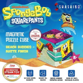 - 🧩 Projetado para oferecer conforto - Shashibo significa qualidade premiada. O design inovador do cubo de quebra-cabeça cabe suavemente na mão para horas de diversão desafiadora! É construído com plástico de molde de injeção premium, 36 ímãs de terras raras e uma superfície fosca à prova de rasgos. Coberto com toneladas de padrões artísticos de Bob Esponja e obras de arte hipnotizantes, para uma história subaquática especial em mais de 70 formas.