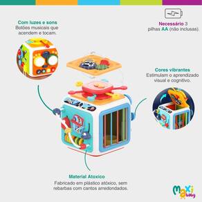 Cubo de Atividade Brinquedo Didático Educativo 7 formas de Uso com Som e Luzes Tiko Maxi Baby