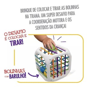 Cubo Entrelaçado Bolinhas Chocalho Elka!Apresentamos o Brinquedo Educativo Cubo Entrelaçado Bolinhas Chocalho da Elka, uma aventura tátil e sonora para o desenvolvimento do seu pequeno explorador!Este cubo inovador é uma experiência sensorial completa. As tramas entrelaçadas convidam as mãozinhas curiosas a explorar texturas e padrões, enquanto as bolinhas internas emitem o som suave e encantador de chocalhos. O resultado? Diversão envolvente e aprendizado ao mesmo tempo!Desenvolvido para despertar a imaginação e a coordenação motora, este brinquedo educativo é perfeito para os primeiros passos do seu pequeno. A mistura de cores vibrantes e sons divertidos cria uma experiência de descoberta que cativará a atenção e proporcionará horas de entretenimento seguro.O Cubo Entrelaçado Bolinhas Chocalho Elka é mais do que apenas um brinquedo - é uma jornada de exploração sensorial e desenvolvimento cognitivo. Ofereça ao seu filho o presente da aprendizagem envolvente enquanto ele se diverte e explora.Não espere para enriquecer o crescimento do seu pequeno com este brinquedo educativo encantador. Adicione o Cubo Entrelaçado Bolinhas Chocalho Elka ao carrinho e transforme cada momento em uma aventura educativa e divertida!Idade Mínima Recomendada: 12+ MesesMaterial: Plástico PolipreneContém: 1 cubo e 4 bolinhas chocalhosDimensões dos Lados Do Cubo: Aprox 16cm
