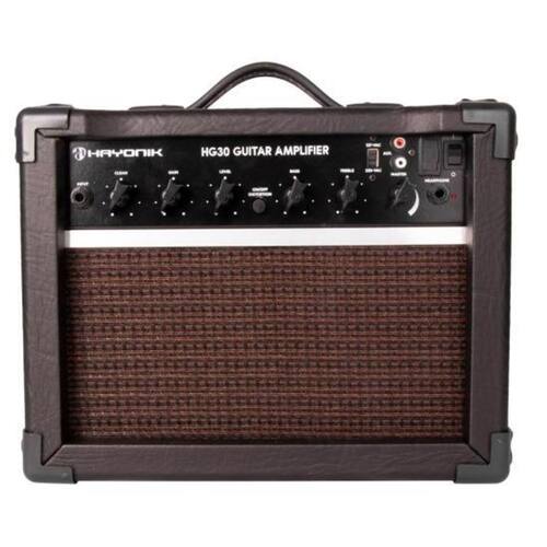 Cubo para guitarra 30w hg30 preto hayonik O hg30 é um cubo para guitarra de 30 watts de potência com um falante de 6 polegadas. Sua ótima construção e excelentes timbres fornecem um som de qualidade para ensaios ou pequenas apresentações.