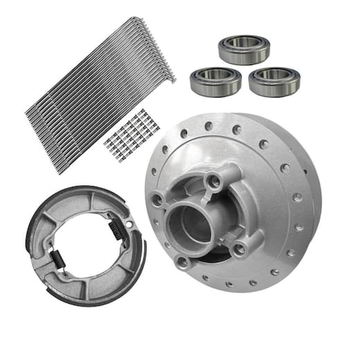 01 Cubo Roda Traseira 01 Patim Freio PV0200 Com Molas 01 Jogo De Raios 4mm Lona 03 Rolamentos
