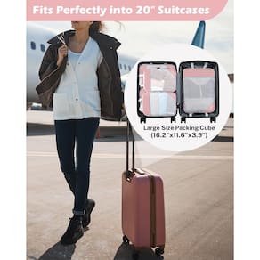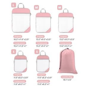 Gonex Organizadores de malha de compressão 1L + 2M + 2S + saco de lavanderia rosa - O conjunto inclui: 1 x grande (41 x 29,5 x 9,9 cm), 2 x médio (33,5 x 23,5 x 9,9 cm), 2 * pequeno (29,5 x 21 x 9,9 cm) e 1 * saco de roupa (46 x 33 cm) - Material macio: O poliéster ultra macio e leve com alta densidade e extensibilidade e zíper suave tornam este conjunto de cubos de compressão extremamente durável quando é preenchido com mais itens essenciais. - Revolucionou sua embalagem: nossos organizadores facilitam a embalagem e reduzem drasticamente o espaço necessário para viagens. Chega de embalar! - Economia de espaço: zíperes duplos do cubo de embalagem funcionam perfeitamente na compressão de roupas para ajudar a economizar espaço em sua bagagem de mão ou mochila de viagem. Ótimo equipamento de viagem para minimizar o tamanho da sua bagagem de mão. Alça rápida para fácil acesso a retirar cubos embalados da mala ou mochila. - Adequado para todas as ocasiões: ideal para férias em família, viagens de negócios, acampamento ao ar livre e armazenamento diário.