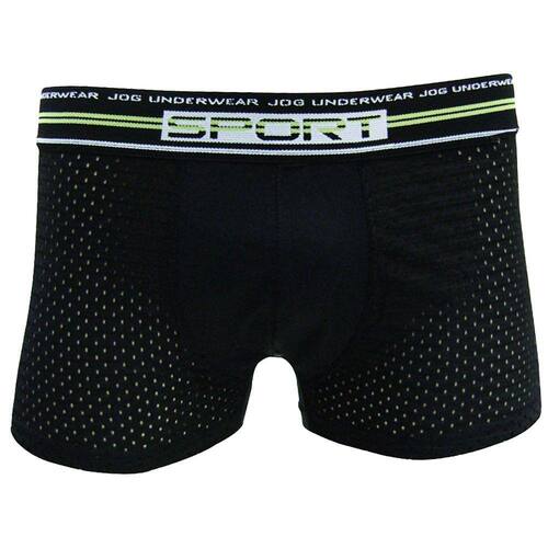Cueca Jog Boxer Sport com elástico aparente e personalizado de 35 mm. Modelo confeccionado em microfibra proporcionando assim um toque macio e confortável. Tecido vazado na parte lateral frontal.