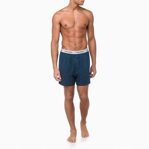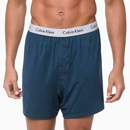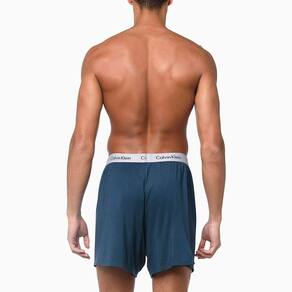 Cueca Calvin Klein modelo Samba-Canção fabricada em tecido Modal com elástico plano aparente personalizado de 35 milímetros. Modelo com vista frontal falsa (fechada). Parte posterior com costura unica centralizada.