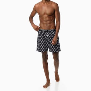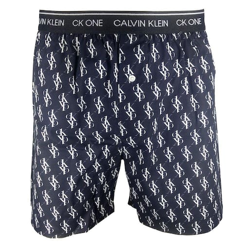 Cueca Calvin Klein modelo Samba-Canção fabricada em tecido Tricoline 100% Algodão com elástico plano aparente personalizado de 35 milímetros. Modelo com abertura frontal e fechamento por botão de casa. Parte posterior com costura única centralizada.
